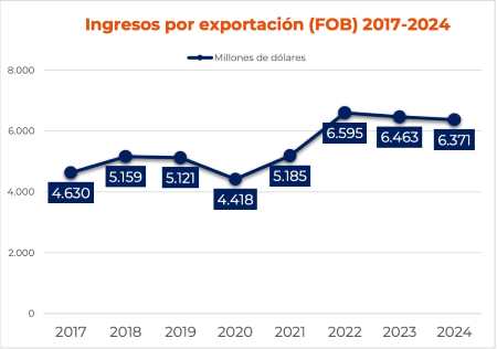 SANTIAGO, febrero de 2025.- Los ingresos de las exportaciones chilenas de salmón cayeron 3,4% en los últimos dos años. Estas magras cifras reflejan el actual estancamiento de la salmonicultura. Además, en 2024 el valor FOB de las exportaciones tuvo una baja de 1,4% respecto al año anterior. En consecuencia, el monto total conseguido el año pasado fue de US$6.371 millones, mientras que durante 2023 se reportaron US$6.463 millones. La producción destinada a exportación se mantiene en torno a las 700 mil toneladas, con un crecimiento marginal de 0,9% en el último año.